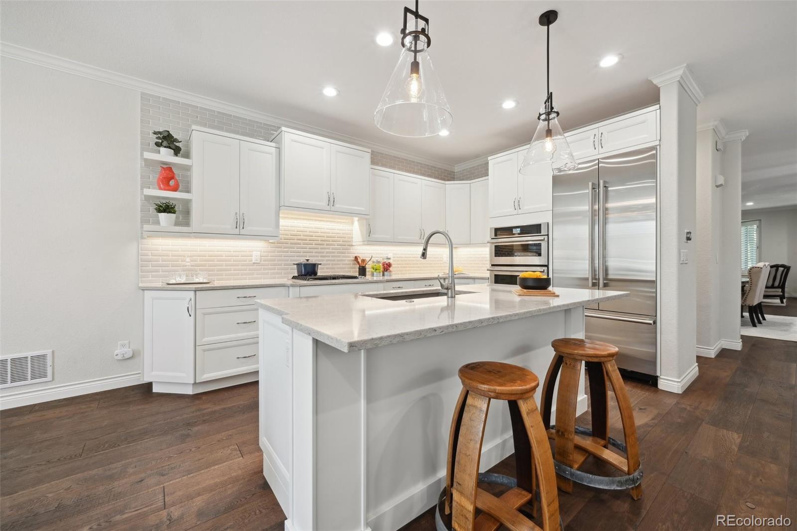 Welcome to this exquisite, sun-drenched residence in the heart of Cherry Creek! Meticulously remodeled in 2019, this home boasts luxurious finishes and meticulous attention to detail throughout. The main floor's inviting family room sets the stage for memorable gatherings, featuring a cozy fireplace and soaring ceilings that enhance the overall ambiance. The light-filled kitchen, seamlessly connected to the family room and private outdoor space beckons for relaxation, al fresco dining, and enjoying Colorado's splendid weather. The adjacent dining room and formal living room provides an elegant setting for special occasions, with two primary suites, this home offers the perfect balance of privacy and convenience, providing ample space for guests. The primary suite is a true retreat, boasting two walk-in closets and a lavish 5-piece bath with a standalone glass enclosed shower, soaking tub, and double vanity. The lower level features a private office space or a forth bedroom, a spacious family room with built-ins, an additional bedroom and bath, as well as a versatile flex space to suit your needs. This home seamlessly combines beauty with livability, offering a harmonious blend of luxury and comfort. Conveniently located just blocks from Cherry Creek Mall, residents will enjoy easy access to an array of dining, shopping, and entertainment options. Additionally, the new HVAC system installed in 2019 ensures year-round comfort, complemented by central AC. Schedule a showing today and discover the epitome of modern elegance in this highly sought-after Denver locale.