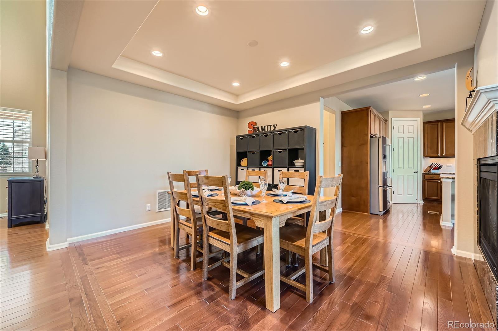 You'll love the dining room, which plays host to a peninsula fireplace, and the