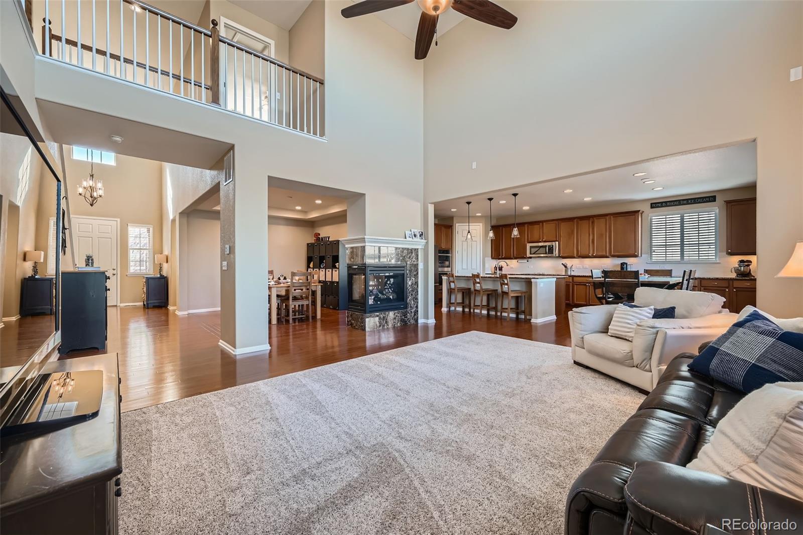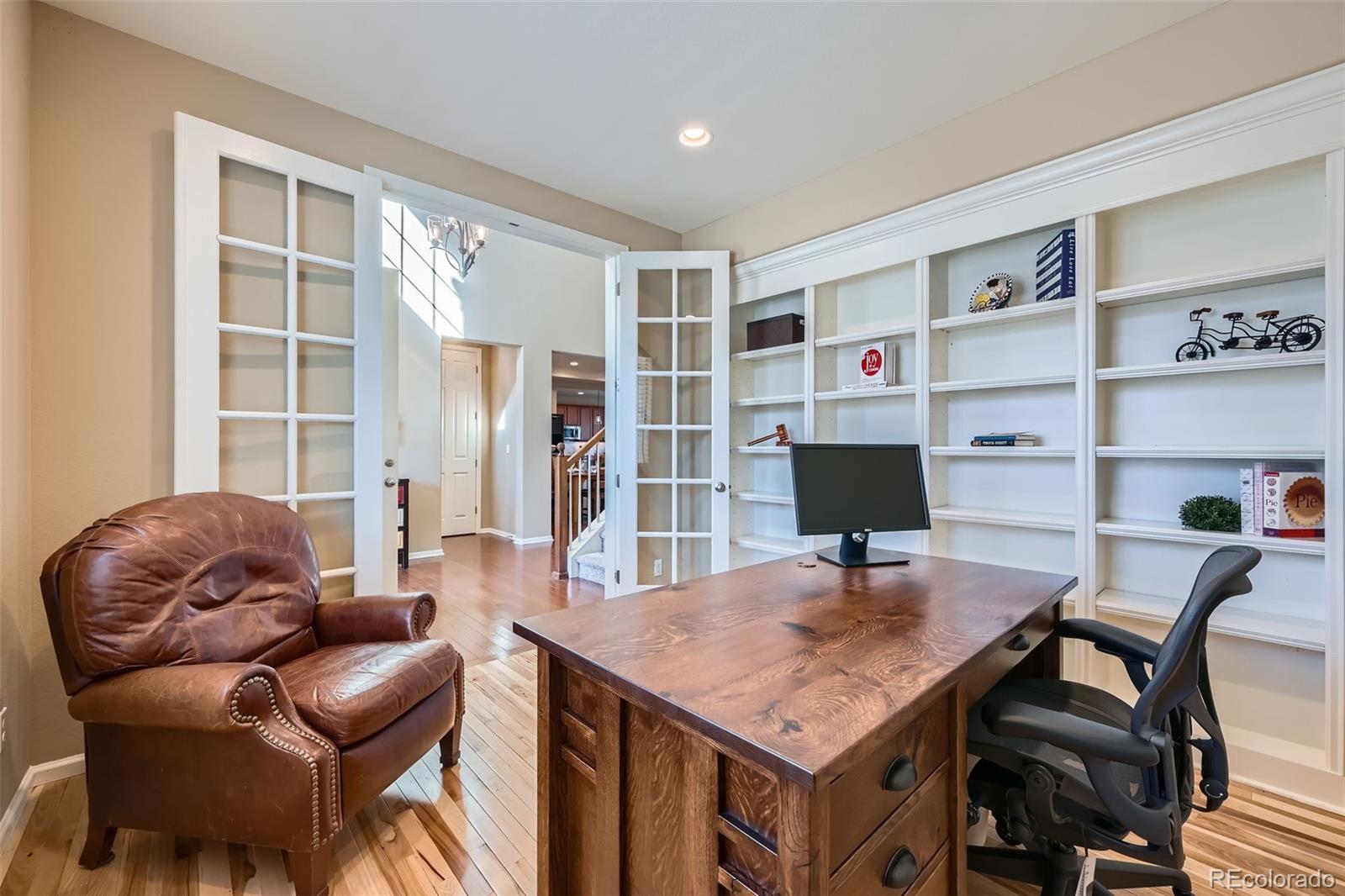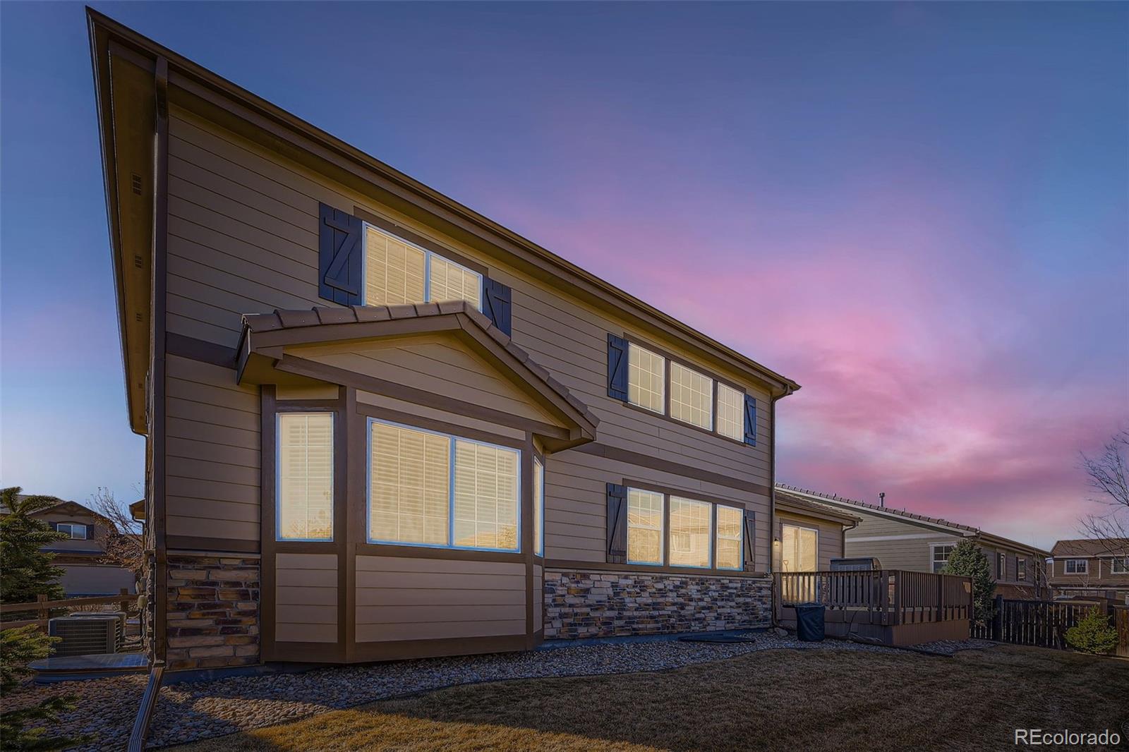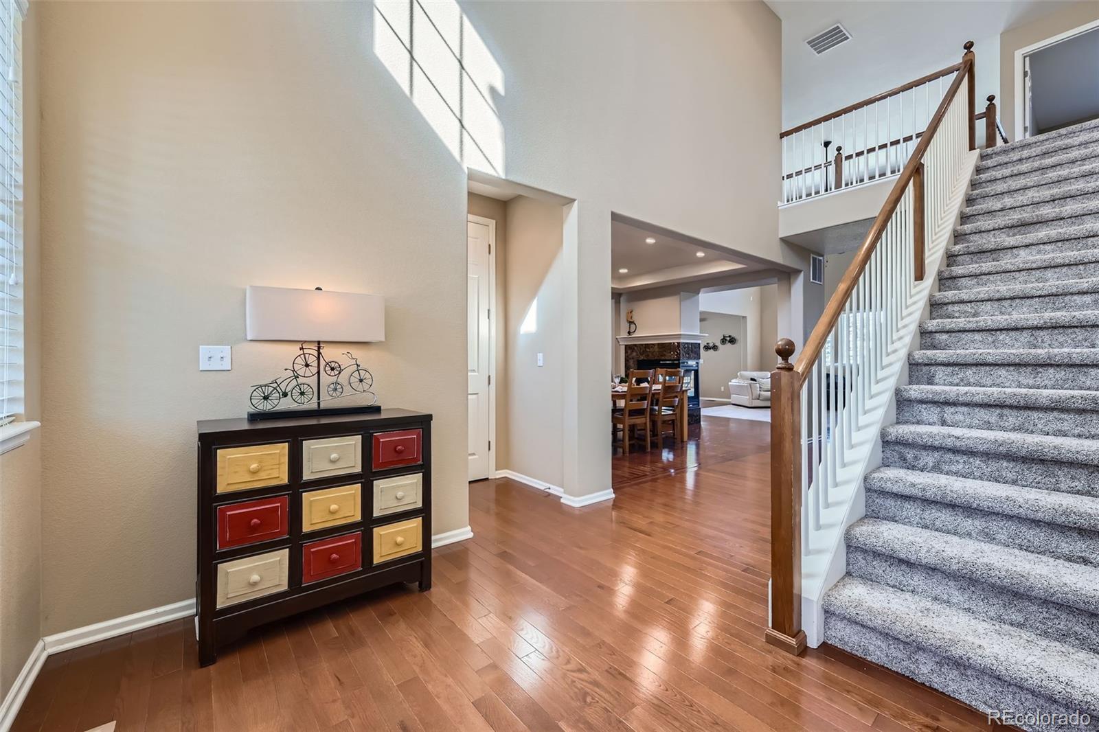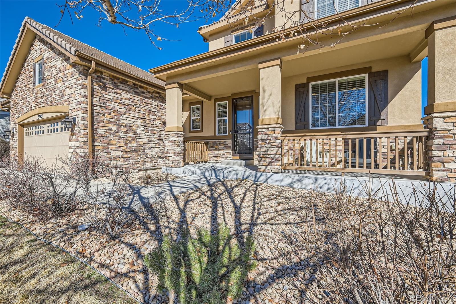 Come see this beautiful, south-facing two story home with rare main floor master nestled in the Meridian Estates in Parker!! From the moment you spot the inviting front porch, wrapped stone masonry,