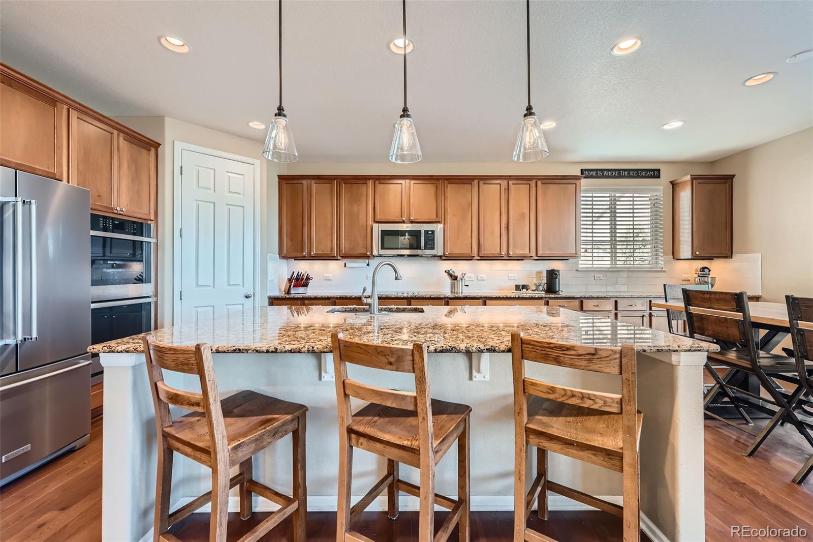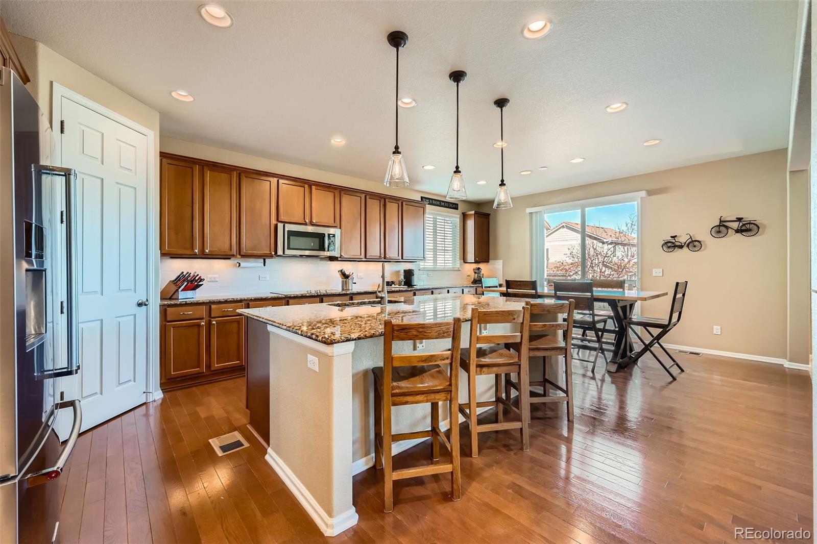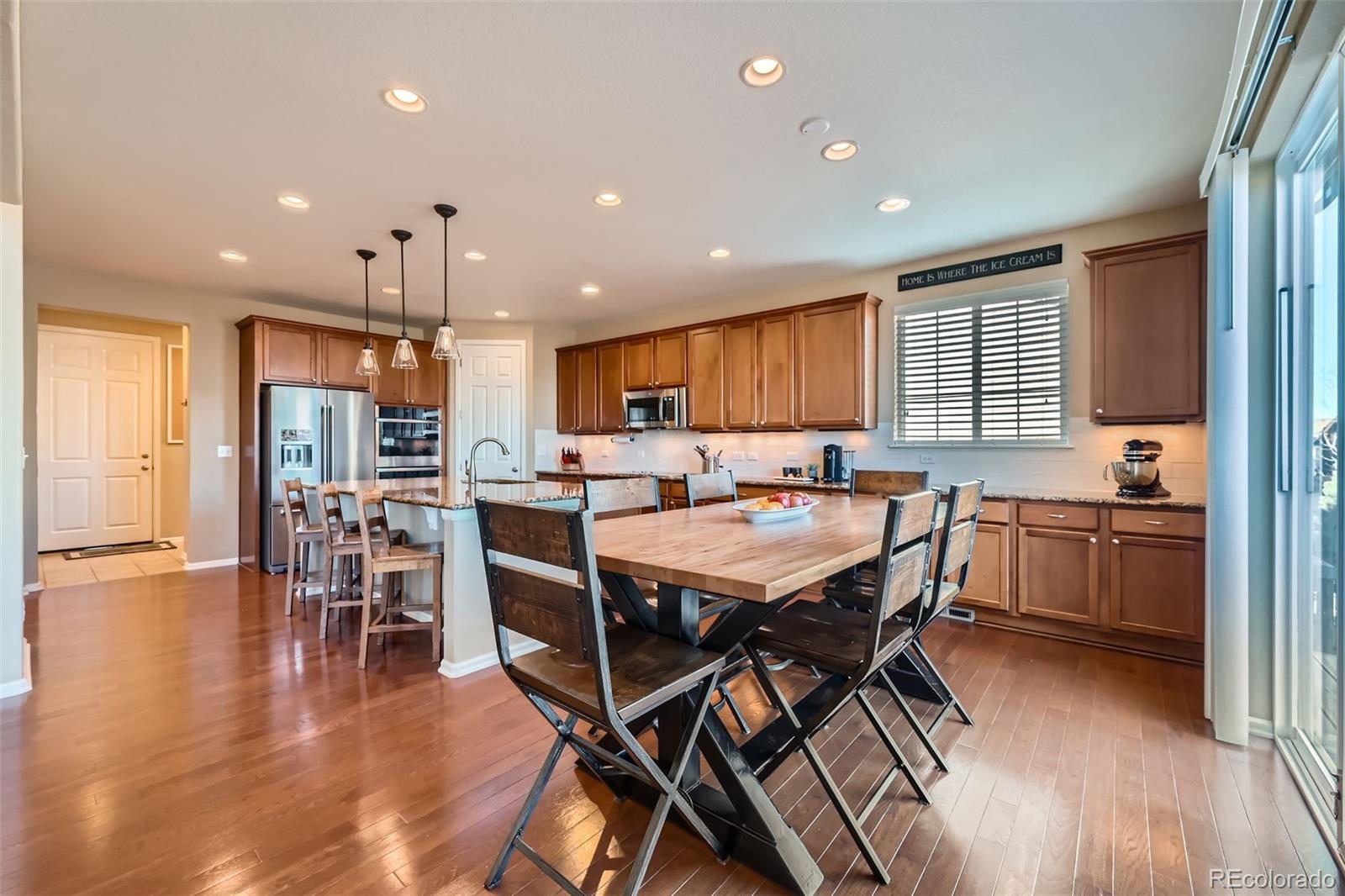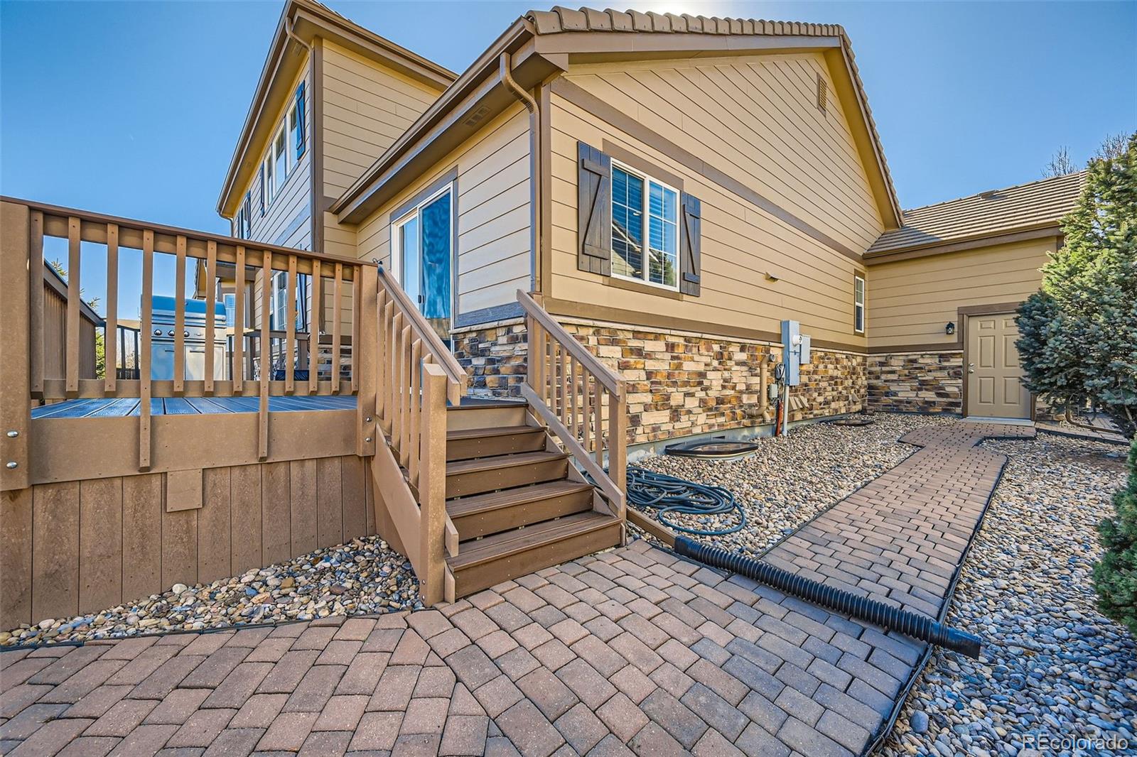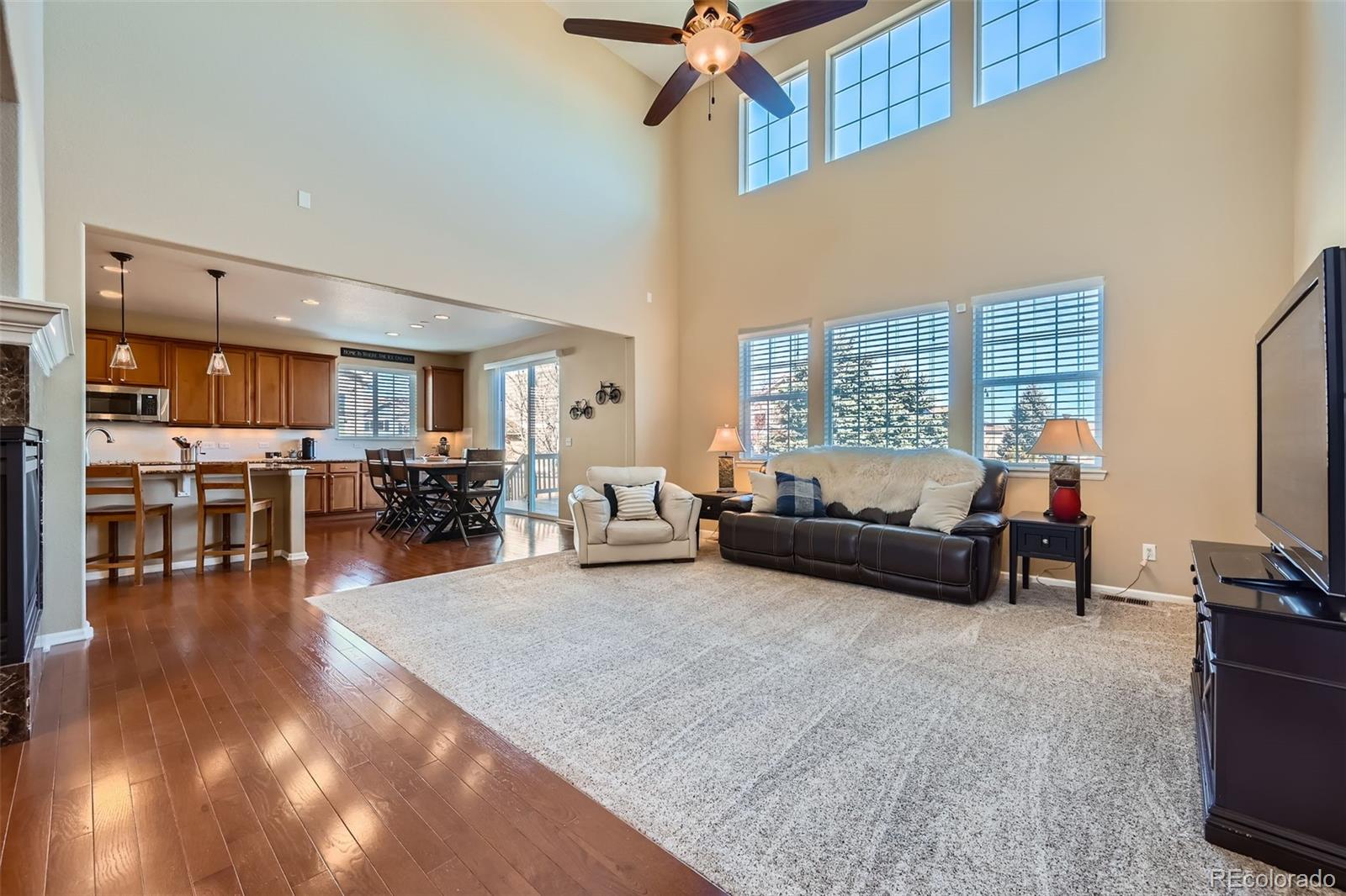 Come see this beautiful, south-facing two story home with rare main floor master nestled in the Meridian Estates in Parker!! From the moment you spot the inviting front porch, wrapped stone masonry,