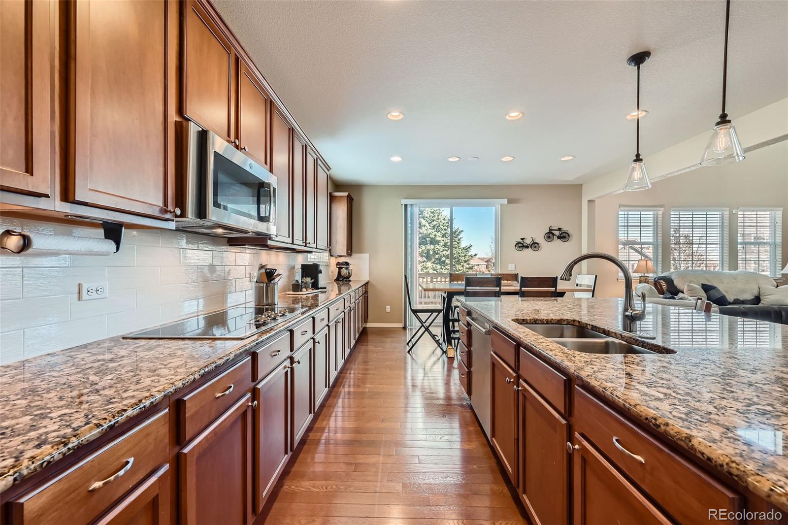 including newer stainless steel appliances, tile backsplash and light fixtures in the kitchen.