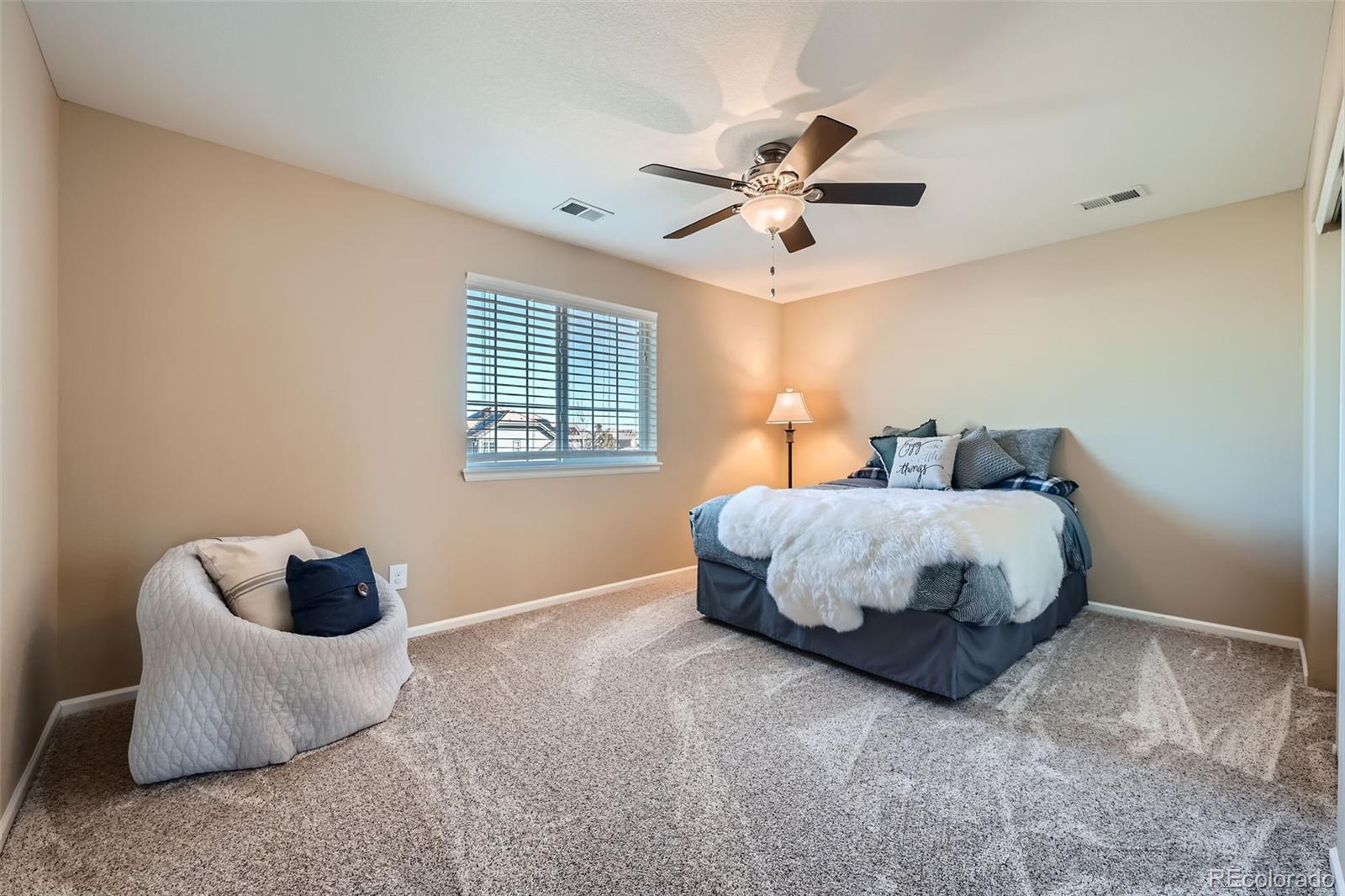 you'll find two more bedrooms with walk-in closets and ceiling fans, as well as a guest
