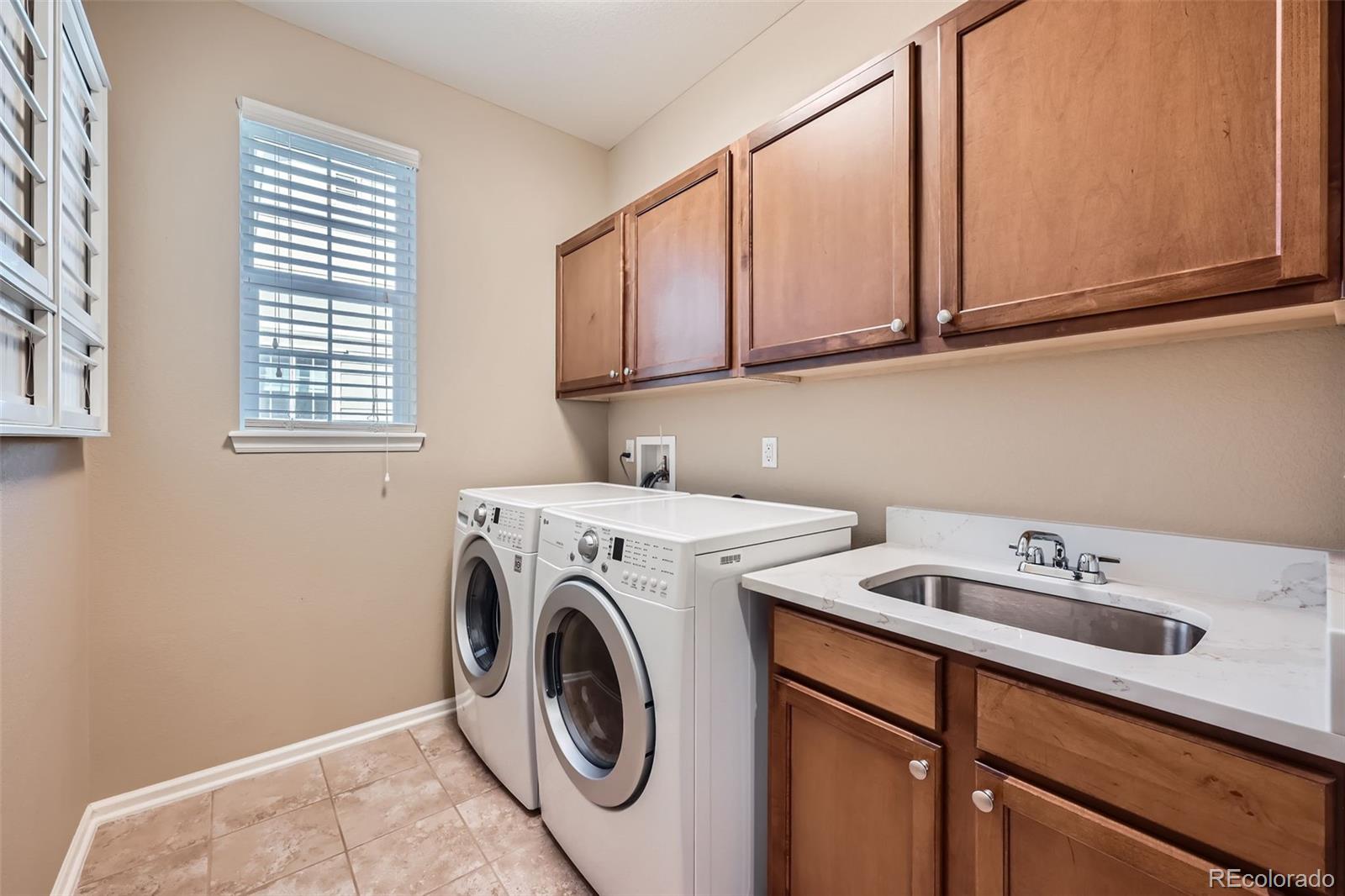 with included washer/dryer. Upstairs, you'll discover three spacious bedrooms and a double vanity bath. The entire