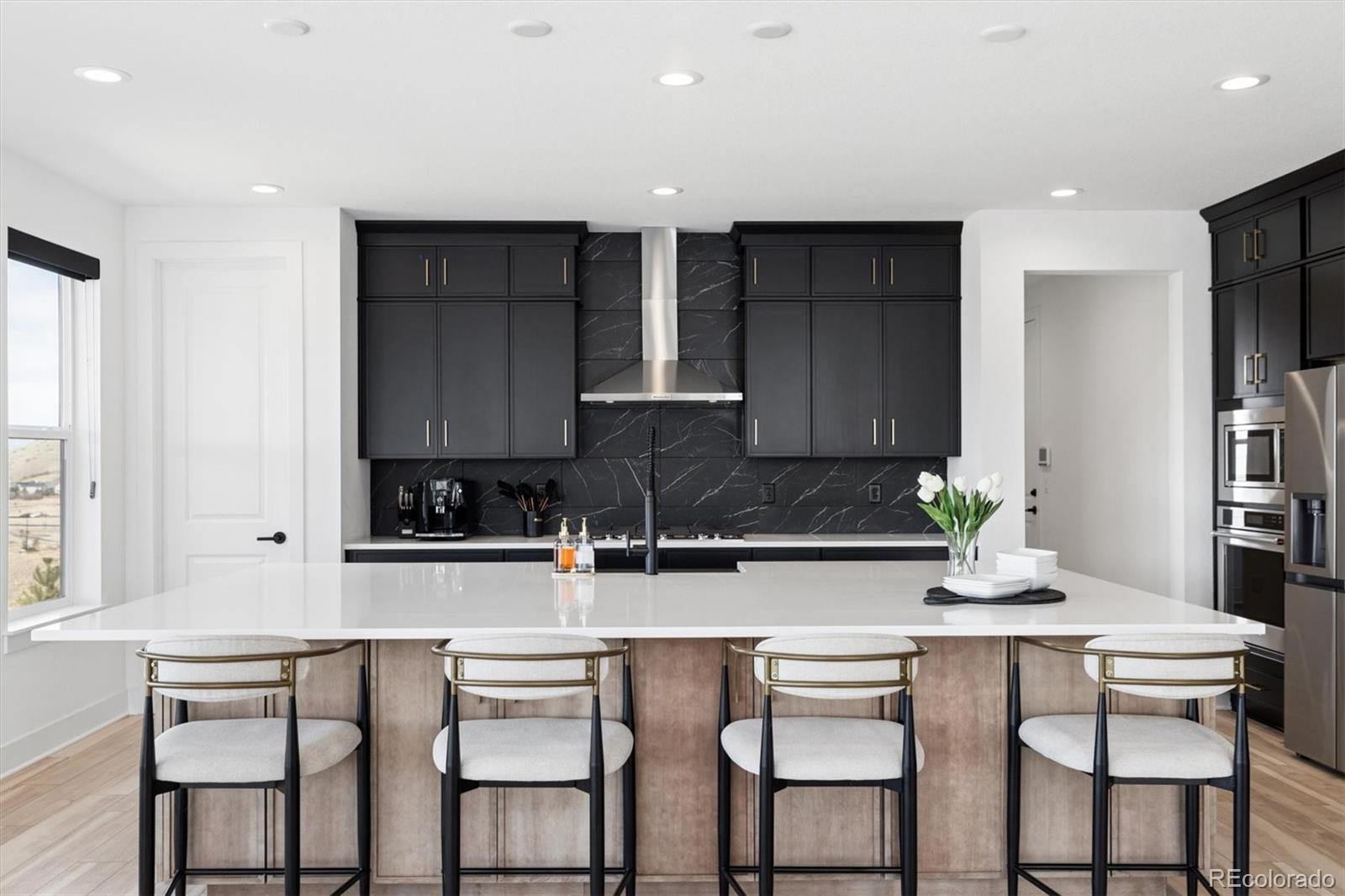 chef's dream, featuring premium cabinetry, a massive walk-in pantry, and sleek slab