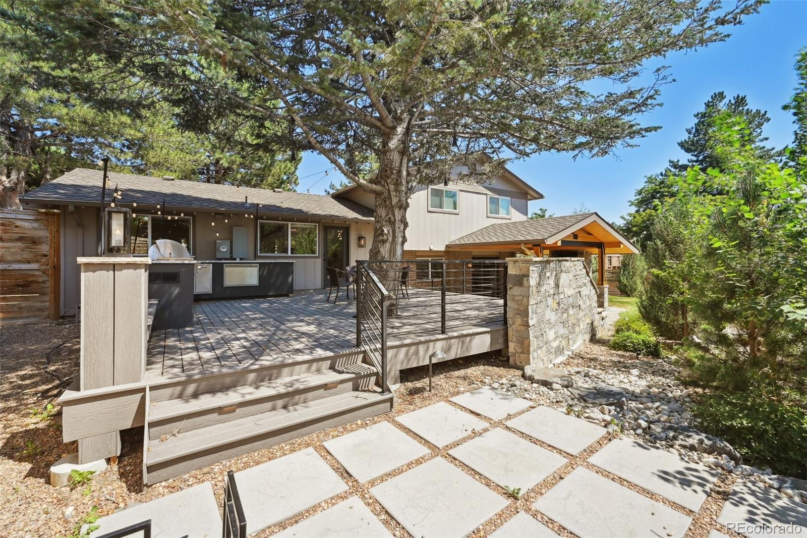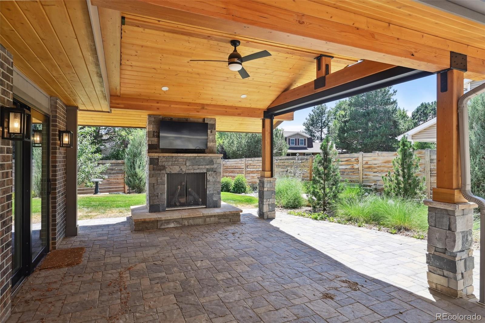 Welcome to this beautifully renovated home in the desirable Heritage Place neighborhood. Step inside and be greeted by the sunlit vaulted great room with a cozy fireplace, seamlessly open to the gourmet kitchen. The kitchen boasts high-end appliances, a built-in coffee station, a huge island, prep sink, quartz counters, and a built-in banquet for dining and access to the backyard oasis. The professionally designed and landscaped backyard is truly an outdoor paradise. It features an outdoor kitchen, a vaulted patio living space with ceiling fan, gas fireplace and TV, a tranquil water feature, automatic sun shade, and smart irrigation and lighting systems. Additionally, there's a private outdoor sitting/lounging patio, ample grass space for yard games, and room for a trampoline or playset. This expansive and serene outdoor retreat is perfect for both comfortable living and entertaining. As if that's not enough, this home is associated with the Newport Club's private pool and tennis community, just steps down the path. The family room, with its own gas fireplace and access to the covered patio, offers additional living space. An adjoining room and bath provide the perfect flex space - ideal for a guest room, craft or playroom, or office. The well-designed and functional laundry room makes laundry a breeze, while the fully finished basement features a bar, full refrigerator, game table space, and a lounge area. Don't miss the large, bright storage area with a utility sink, storage, desk, and organization features. For added convenience, the home is equipped with newer HVAC systems, roof, sewer line, and electrical upgrades. This home presents a unique opportunity to enjoy modern living in a desirable location within the sought-after Cherry Creek School community. Don't miss out on the chance to call this meticulously crafted home your own. Experience a perfect blend of luxury and comfort in this exceptional Centennial residence.