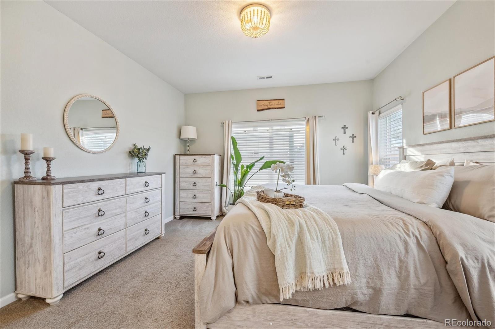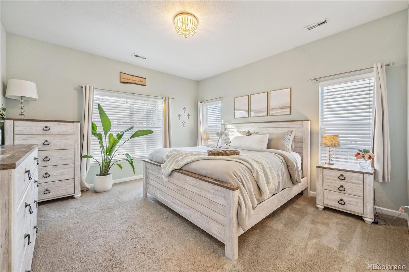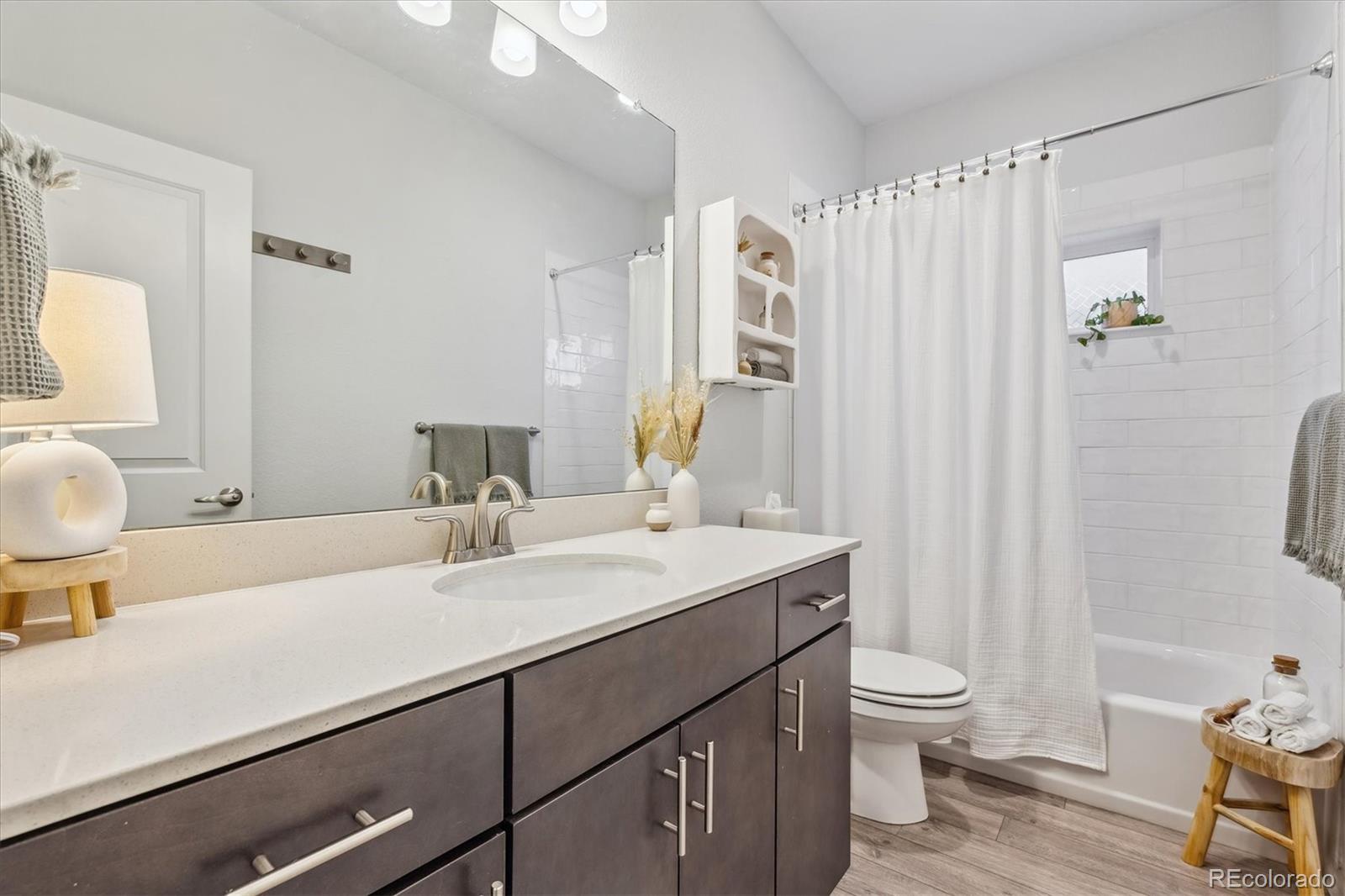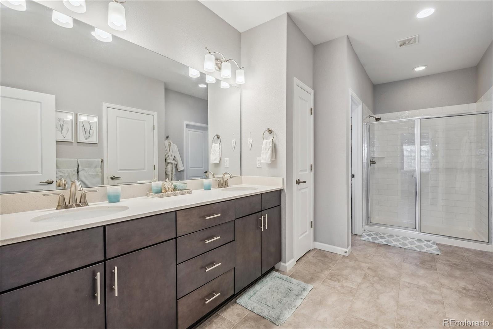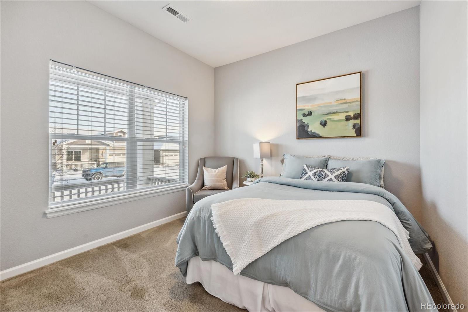 Discover the epitome of modern elegance in this 2017 ranch-style home, nestled in a tranquil Denver cul-de-sac adjacent to open space and a community park. This single-owner residence shines with an open, airy layout, integrating a bright living area, dining space, and a gourmet kitchen with an oversized island and ample storage. Boasting three spacious bedrooms, the highlight is the luxurious primary suite featuring a double vanity and a walk-in closet. Energy-efficient amenities are thoughtfully integrated for eco-friendly living. The home's exterior is just as impressive, offering a private, landscaped backyard with an attached patio and covered seating area, perfect for outdoor dining or entertaining. This home is a unique blend of comfort, style, and convenience, designed for those seeking a balance between quiet living and close proximity to city amenities.